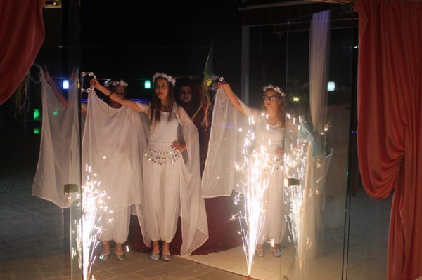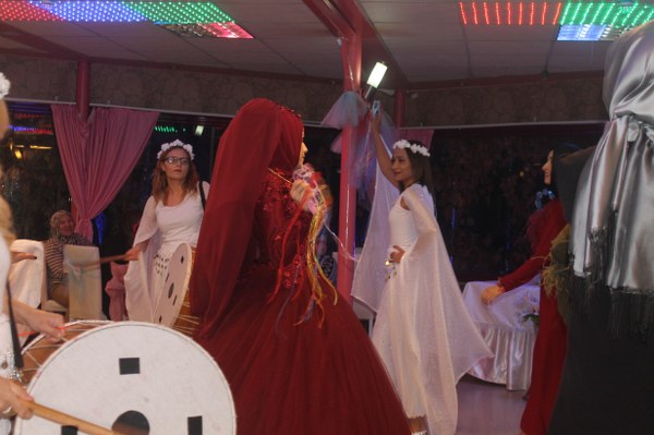 4 Kişilik nedime ve dans ekibimizden, uzman fotoğrafçımız ve organizasyon liderimiz ile birlikte o gün orada her şeyin mükemmel geçmesi için uğraştık. Büşra gelin konfeti ve volkan eşliğinde tam bir görsel şölen ile arkasında nedime ekibimiz olmak kaydıyla salona girdi. Giriş esnasında ‘Haydi kızlar kalkın göbek atmaya oynamanın geldi vakti saati’ adlı parça çalıyordu. En önde ki nedime kızımızda ve en arkadaki nedime kızımızın elinde davullar vardı. Davulda şarkıya büyük bir ahenk ile eşlik ediyor Büşra davetlilerin alkışları arasında piste doğru ilerliyordu.