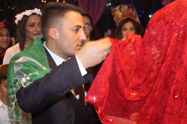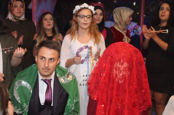 Piste gelindiğinde birden ‘Güzeller içinden bir seni seçtim’ adlı şarkı çalmaya başladı. İki nedime kız eşliğinde bu kez damat bey salona giriş yapıyordu. Aynı şa şa ve gösterişle davetlilerin tempolu alkışları eşliğinde salona giren damat bey pisin ortasında bekleyen Büşra hanıma ceketinin içinden bir gül çıkartıp verdi. Bütün bu kurgu Başkent Organizasyon tarafından hazırlandı. Çiftimiz dans müziğinin arkasından misafirleri ile birlikte çalınan oyun havalarına eşlik etmeye başladı.
